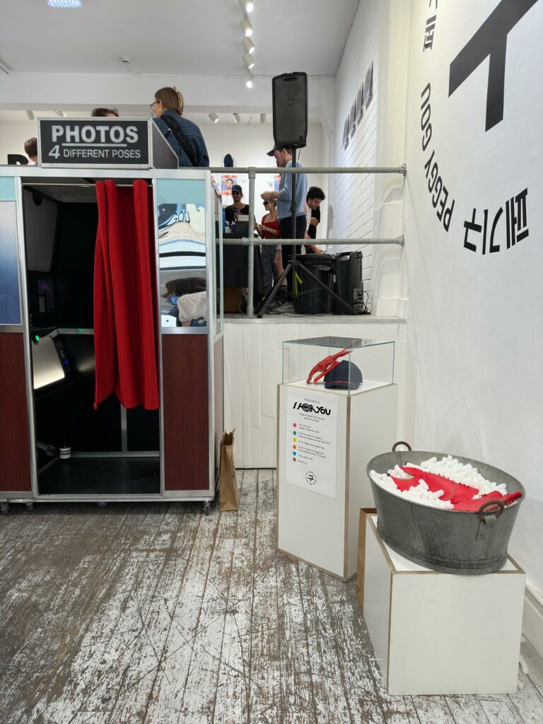 We are proud to support Peggy’s Shoreditch pop-up, specialising in design-led pop-up furniture rentals. FoundPop provided essential furniture for the event, from sleek white tables for merch and ‘I Hear You’ vinyls to mirrors and plinths for bold decor. This partnership ensured that the pop-up was not only functional but also aesthetically aligned with Peggy’s artistic vision.