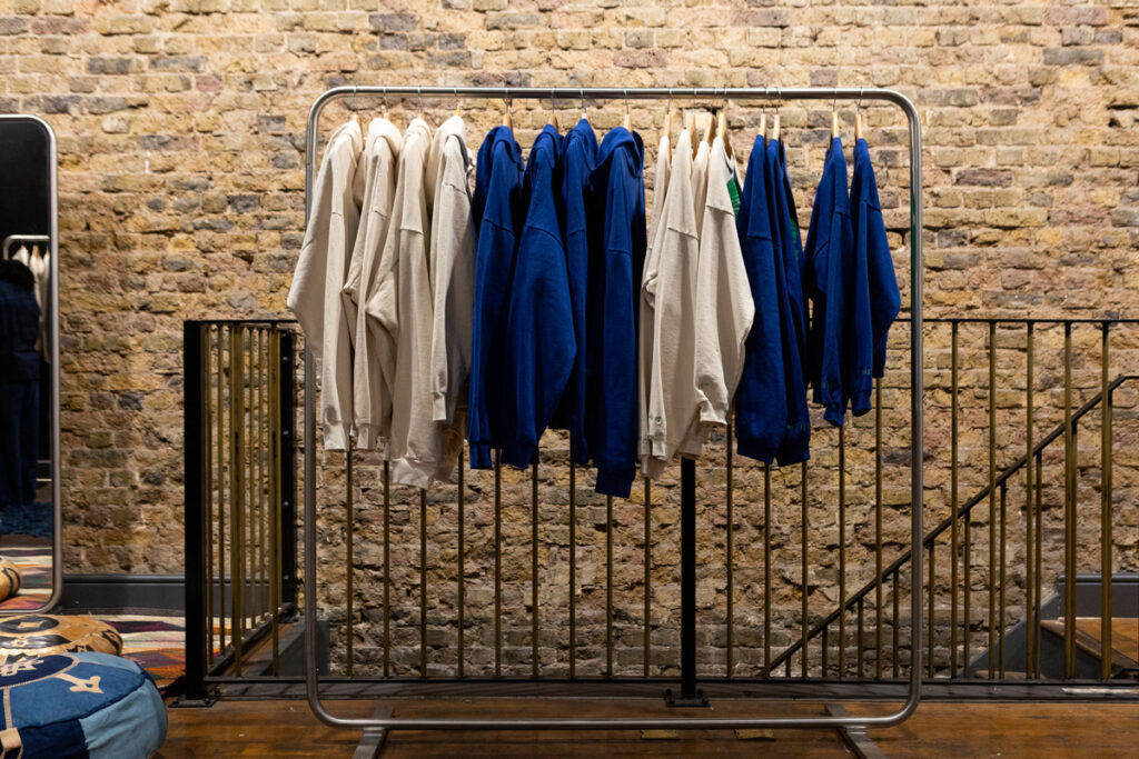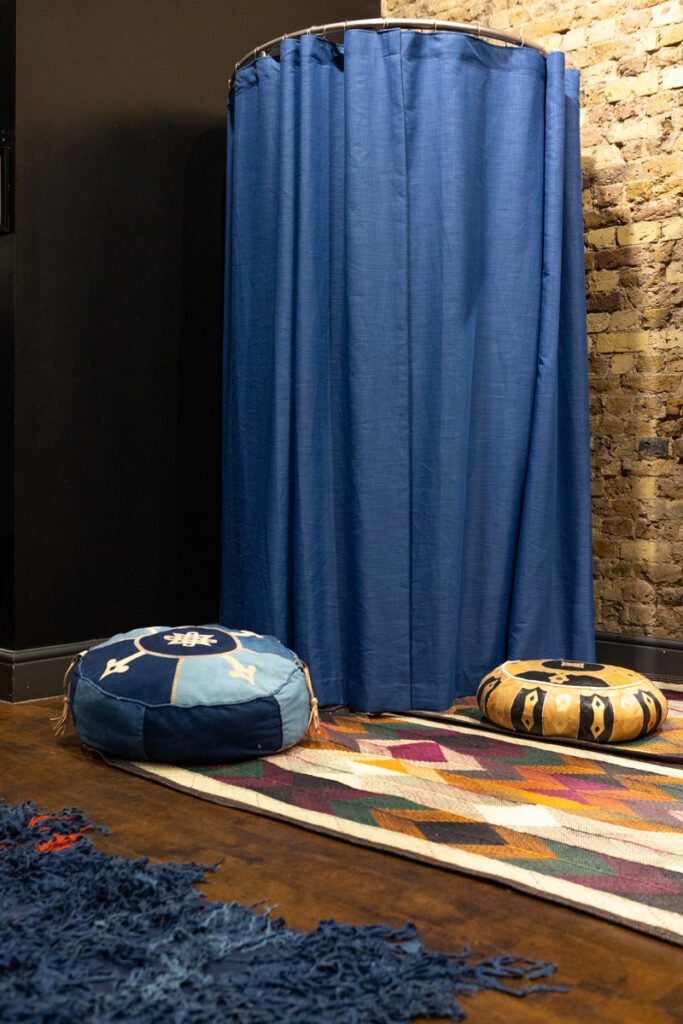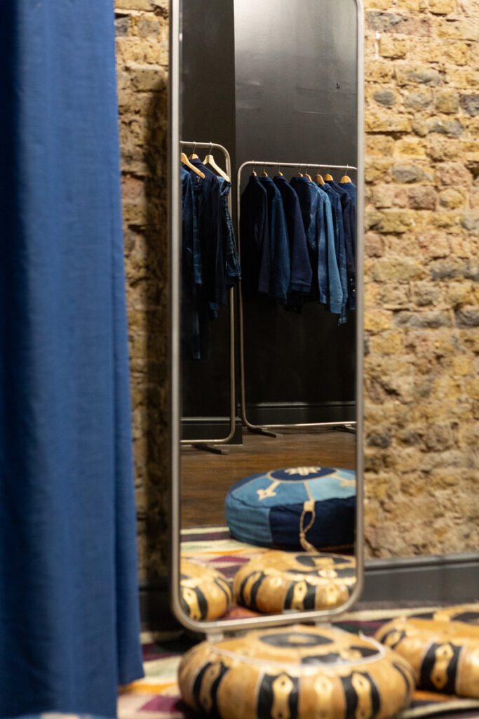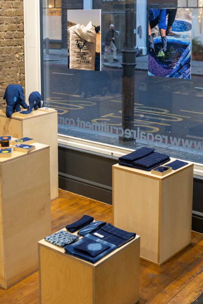 The space worked perfectly because our brand colours, shades of indigo can seem very summery but when juxtaposed against the black walls, it looked perfect for a winter pop-up. FoundPop’s natural toned furniture also brought through the lighter elements of our brand colours, and worked very seamlessly with the decor pieces that we had. Overall we were quite pleased with our winter retail identity.